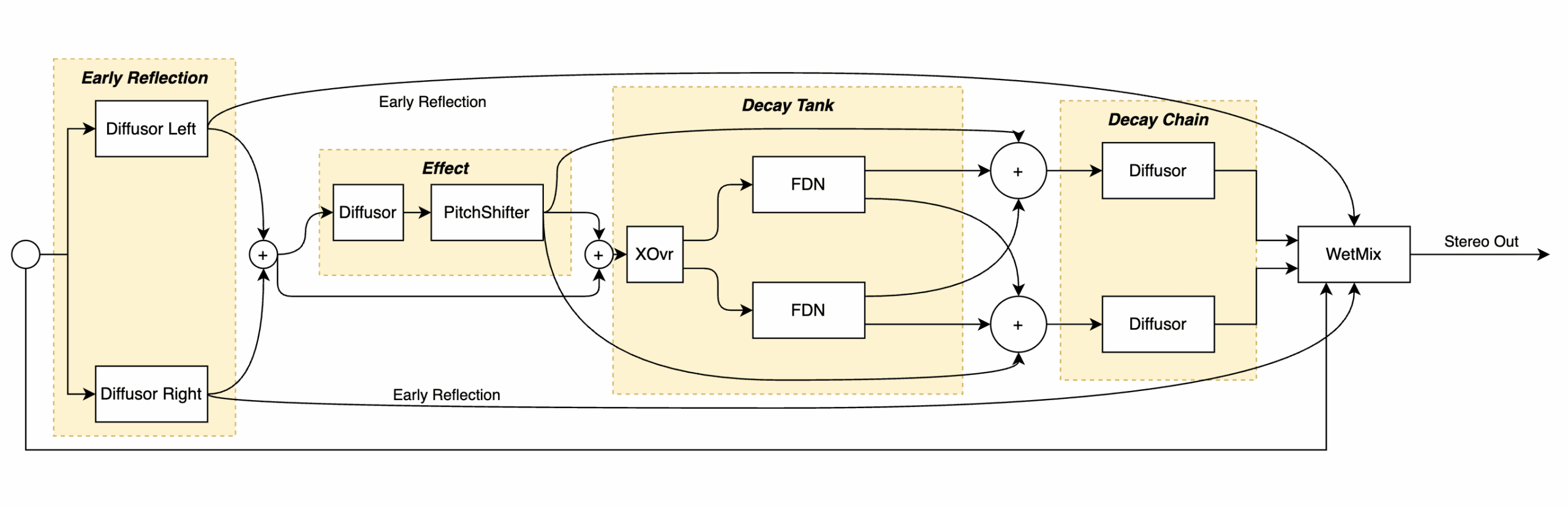 - Effect Chain: Allows for pitch-shifting and other special effects within the reverb.