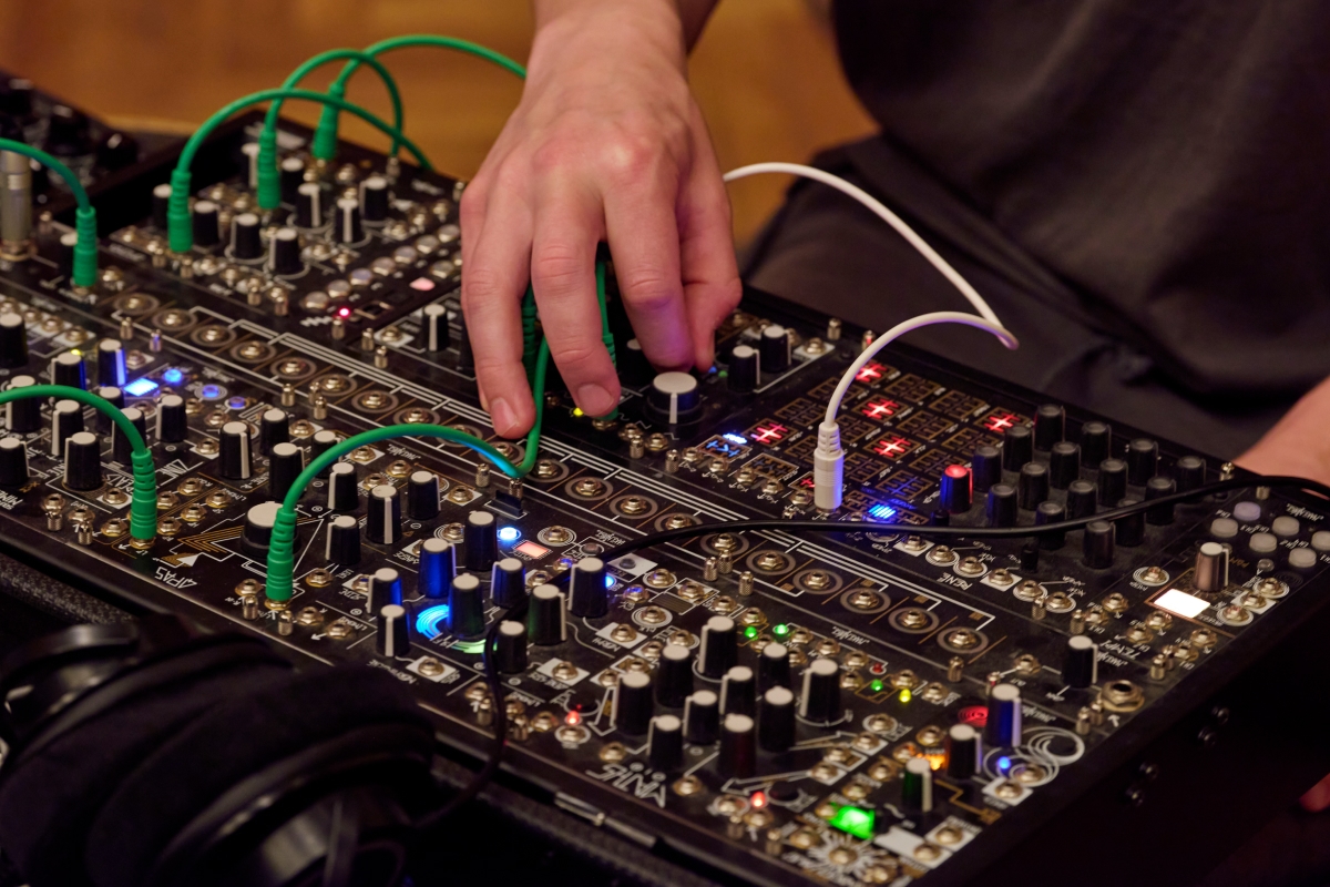 Transducers pull vibrations into corners, across edges, into objects never meant to speak, letting metal plates, drums, and strings respond in unexpected ways. Every take behaves differently, echoes curve, textures shift, collisions create patterns that feel alive without over-explaining themselves. No electronics are needed for the acoustic voices, but the synth adds quiet waves and hums, nudging the instruments toward new forms.